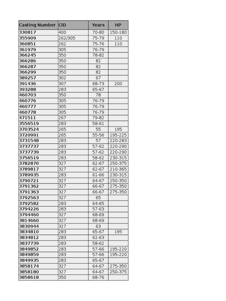 Chevy Engine Casting Numbers PDF Hatchbacks Car Body Styles